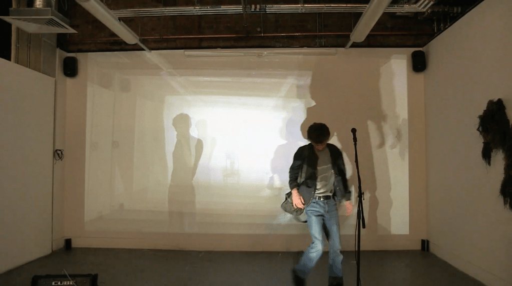 Zach Thompson is an artist living in London. Having recently graduated from Central St Martins, he is currently making and exhibiting work as part of the Arts & Music collective Basil Productions. His work encompasses disciplines of moving image, writing, sound, music and performance, often situating his physical self within the work. His conceptual concerns surround ontological encounters with space and time, contradictions inherent in self-reflexive structures and semantic tensions between language and communication. He explores his ideas in both individual and collaborative settings, often situating physical bodies amidst digital environments, encouraging interaction with these technologies in an analogue way. Essentially, the central methodological and conceptual core of his work is constituted by an investigation into the nature of mimesis. Whether this is presented through imitative performance scenarios or in the re-presentation of the same object through different means, Thompson invites the viewer to question the nature of the object before them, and subsequently the medium through which it is presented. Despite his considered structuralist compositions, what is repeatedly communicated is a negation or breaking down of structural integrity, often at the hands of the structure itself. This element of his work invites the viewer to consider the stability and truth of the phenomena they are presented with, and further, the stability of a notion of the self.